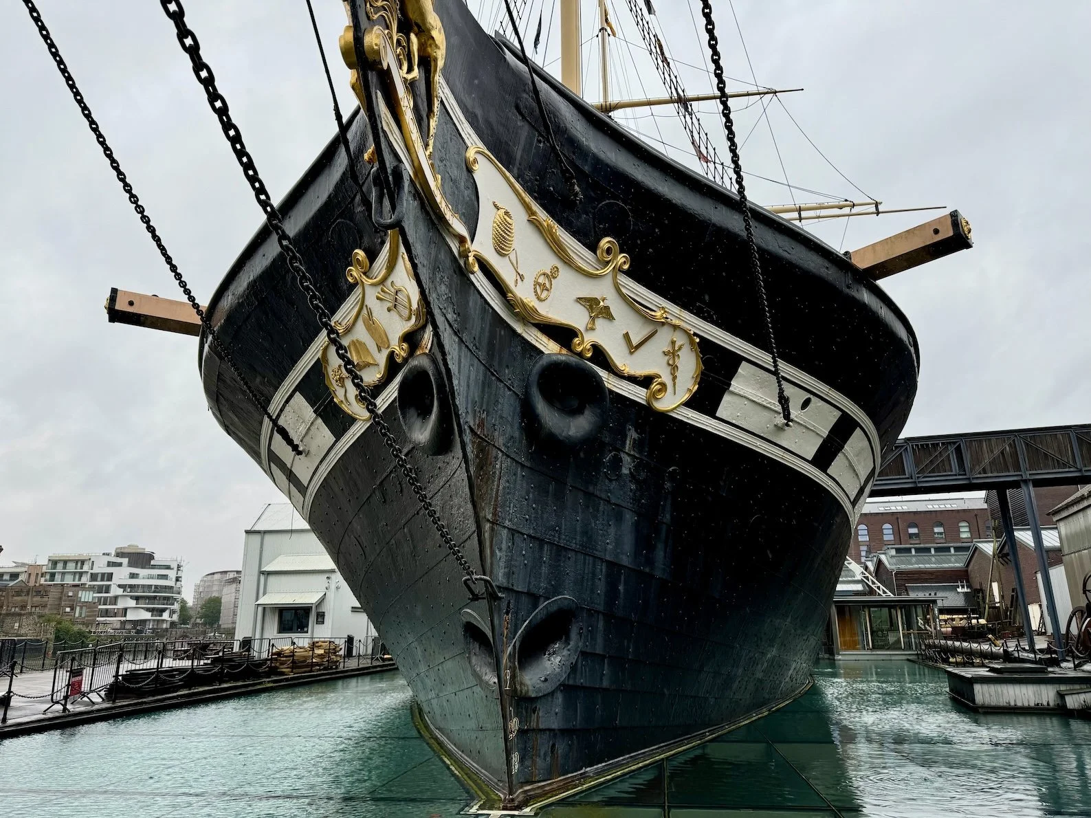 Another lift took us through the “glass sea”, which not only gives the illusion that you’re being submerged under water, but also serves the purpose of keeping the fragile hull dry — Very much needed with the weather as it was! To prevent the iron from rusting further, industrial-sized dehumidifiers also keep the air as hot and as dry as the Sahara Desert, which was immediately noticeable when we exited the lift. Brunel’s SS Great Britain towered over us, as we gazed up in awe. A walkway allowed us to explore the length of it, though it merged into cobblestones towards the innovative screw propellor at the stern.