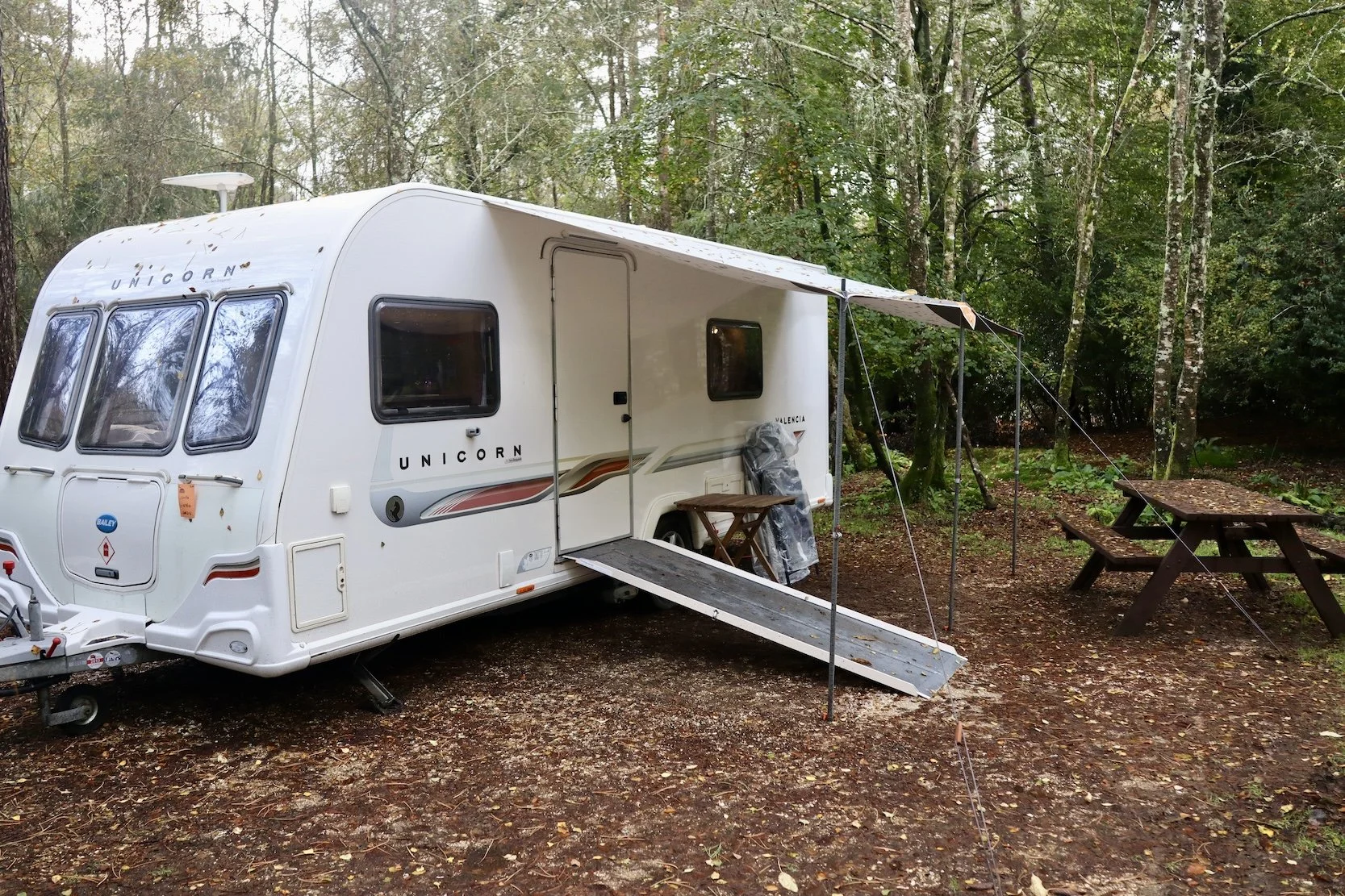The following morning we opened our blinds to reveal a bright blue sky and sunshine bursting through the trees, flooding our caravan with a mottled light. The air was fresh, greenery surrounded us in every direction and birdsong was in full chorus. It was quite a contrast to the bright, artificial lights and air-conditioned halls that we’d grown accustomed to the previous week.